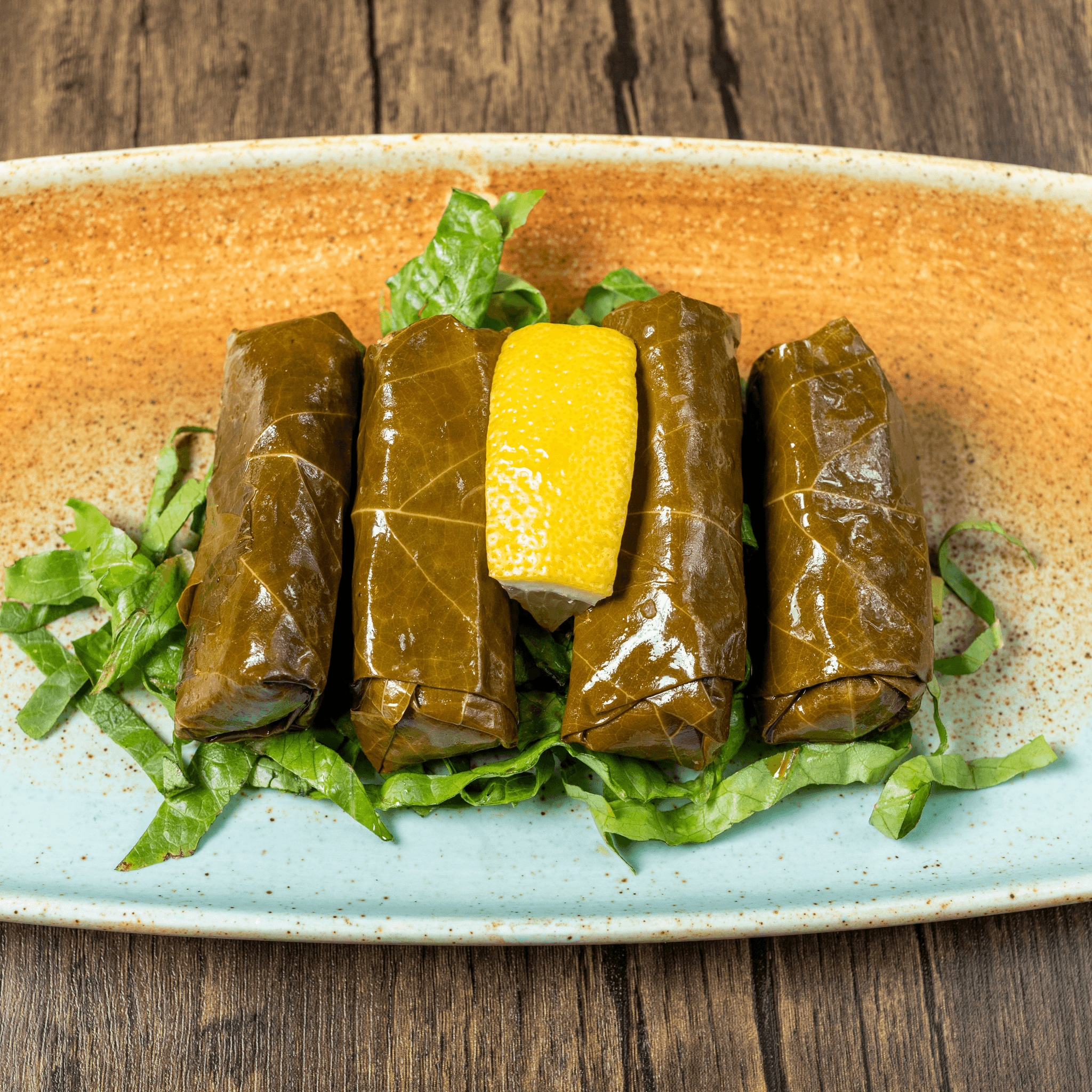 4 pieces. Vegan, gluten-free. Stuffed with seasoned rice and tomatoes, cooked with pomegranate molasses.