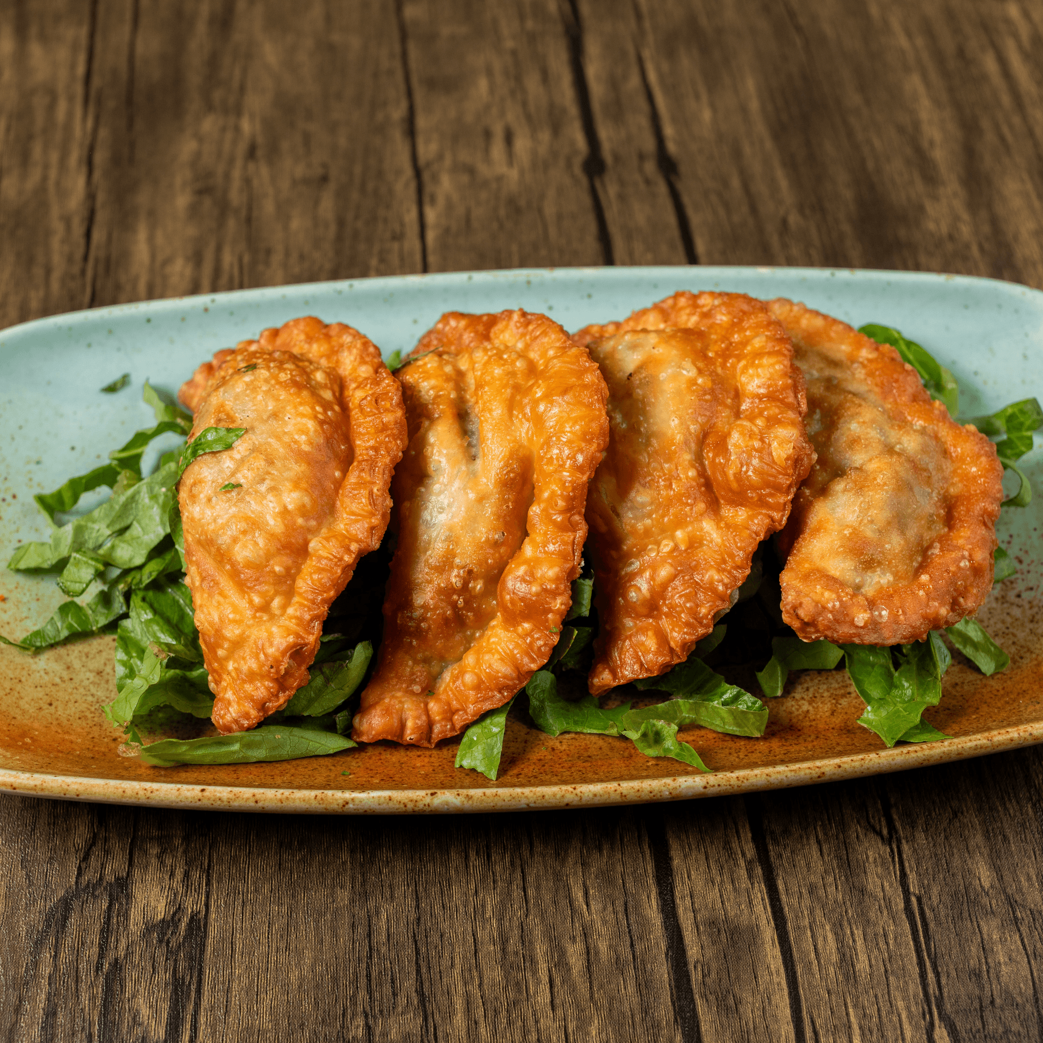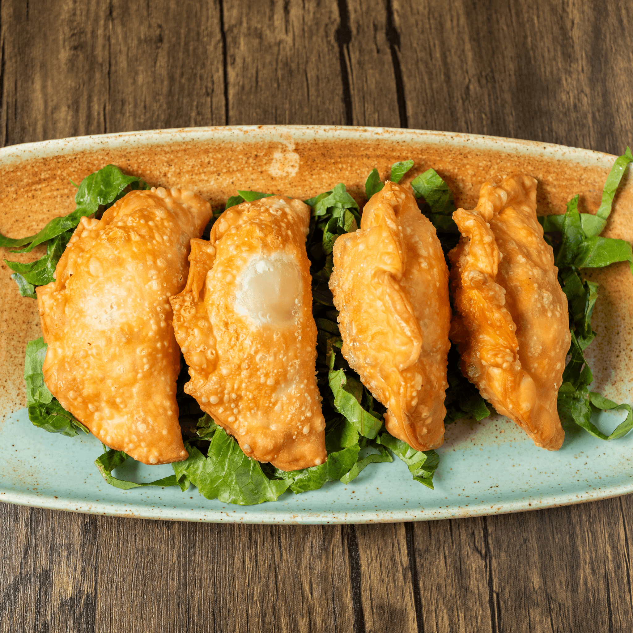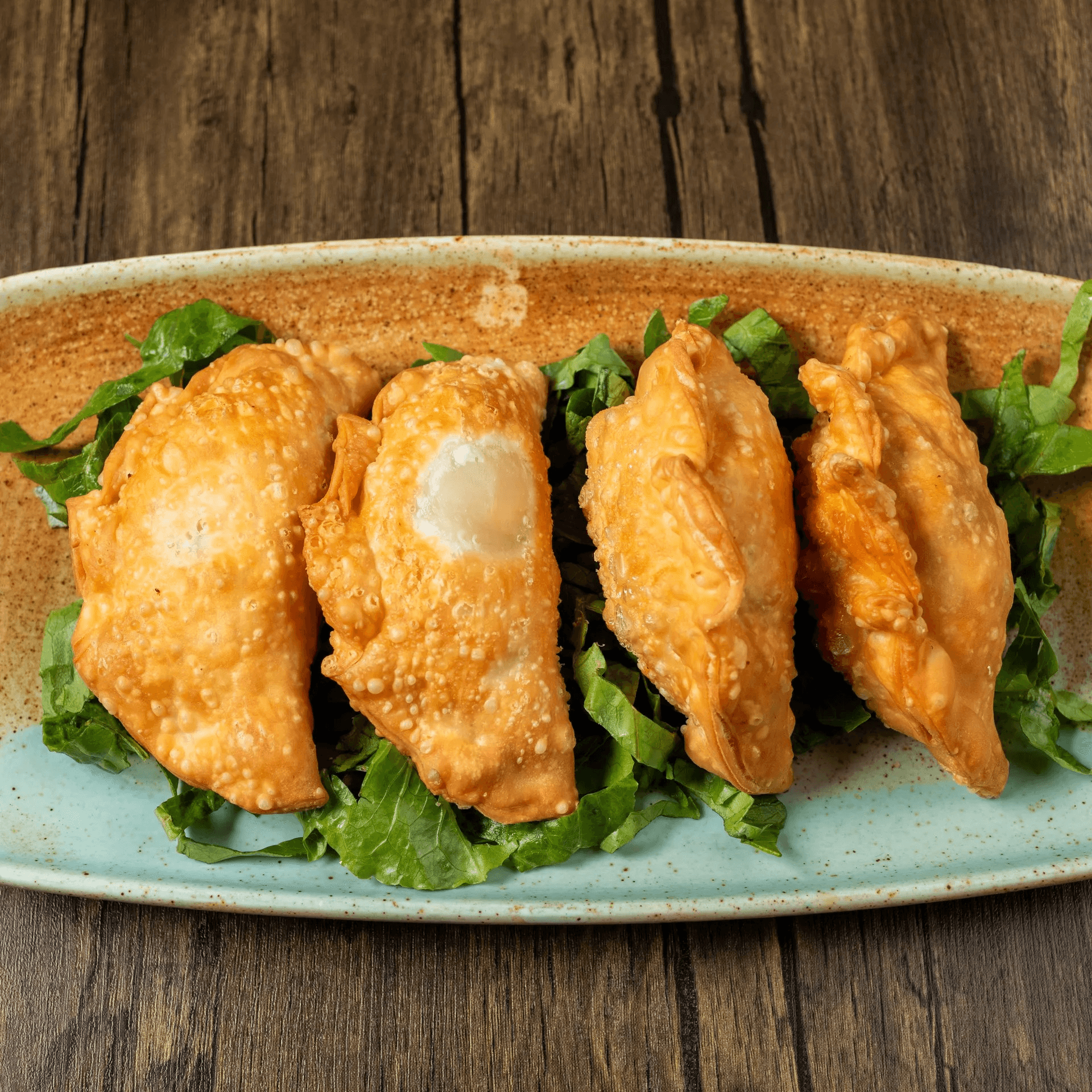 4 pieces. Spicy Armenian beef sausage with white mozzarella cheese, stuffed in empanada dough & fried.
